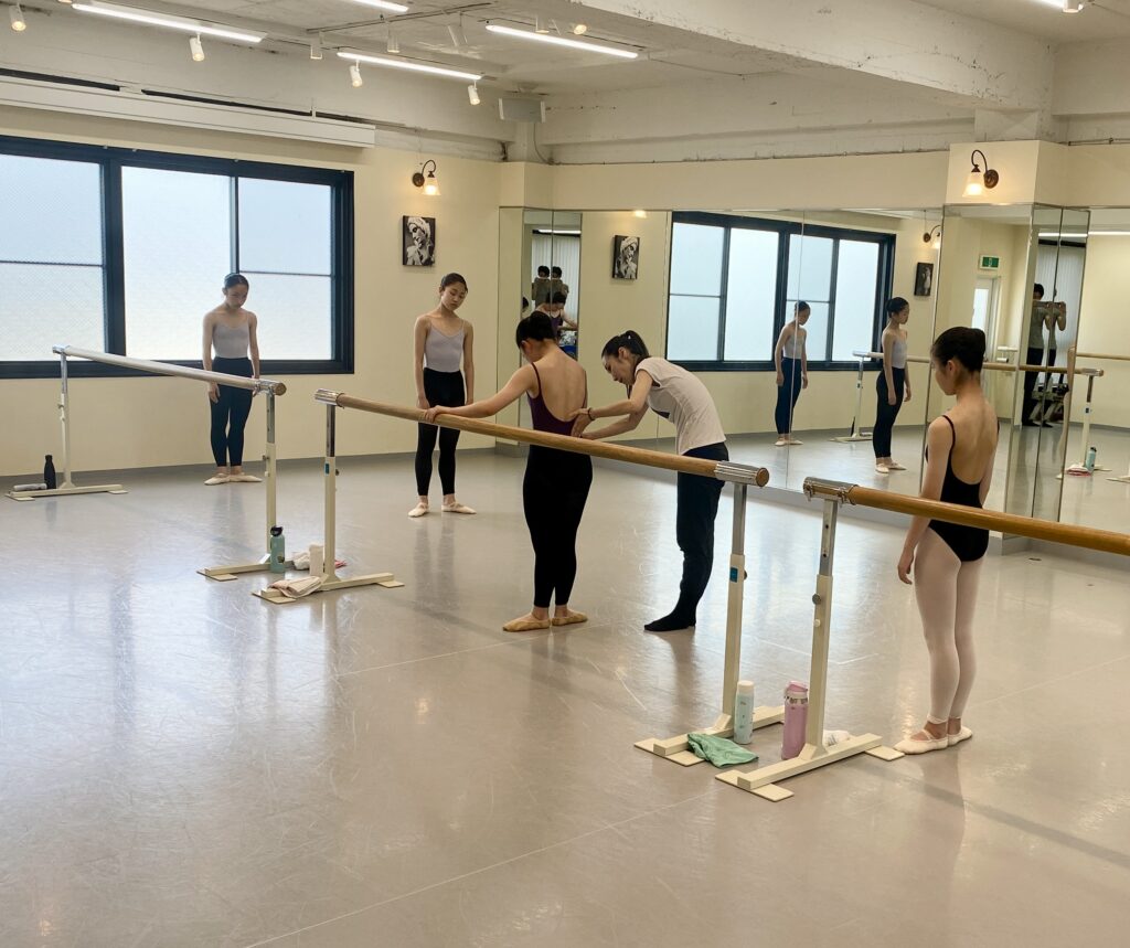 夏のWS第一弾、山井絵里奈先生のコンテンポラリーWSを開催いたしました。 第1グループは、コンテンポラリー初体験のジュニアCDクラス。始まる前はきっと緊張していたと思いますが、柔らかで優しい絵里奈先生の雰囲気に、全員がすっとクラスに引き込まれていきました。頭で理解しても思ったように身体が動かないことや、難しく感じたこともあったと思いますが、臆することなく楽しそうに取り組むことができました。身体のアライメントについてや、手をつく場所など、分かり易い説明が素晴らしかったのはもちろんですが、何よりも日常の動作からイメージが膨らむような声がけがどれも本当に素敵でした。 コンテンポラリーという新しい分野の敷居を、必要以上に高く感じることなく、自然に招き入れてくださった絵里奈先生に感謝です。 第2グループの選抜クラスは、少しだけ経験があることもあり、基本ともう少しプラスの構成になりました。バーレッスンは特に、アライメントについての知識や感覚がより深まったのではと思います。 最後には、自分と対話をするような小さなソロに挑戦。例えば冒頭の、前進しながら手を出すことだけが決められた振り付けでは、自分の道をどう歩くかはみんなが感じるがままに、各自の思うままにという指示が出ました。 同じじゃなくていいー、そんな言葉の響きを味わいながら、この自由をどう表現するのかと見守っていましたが、目線や表情、出した手の存在感は全員が全く違う色をしていて、それはとても感動的な瞬間でした。 生徒たちの反応を細やかに感じながらの指導は、私たちもとても勉強になりました。絵里奈先生、本当にありがとうございました!